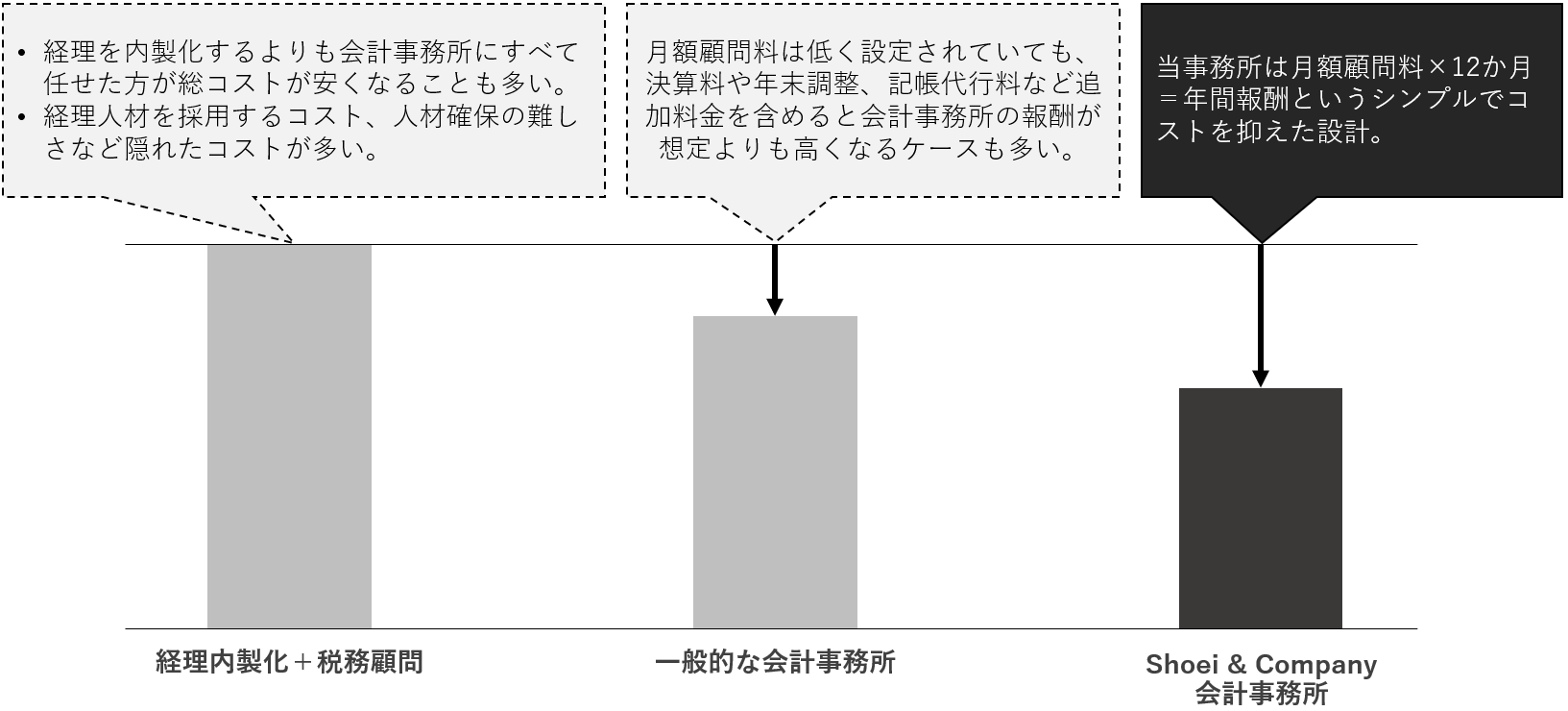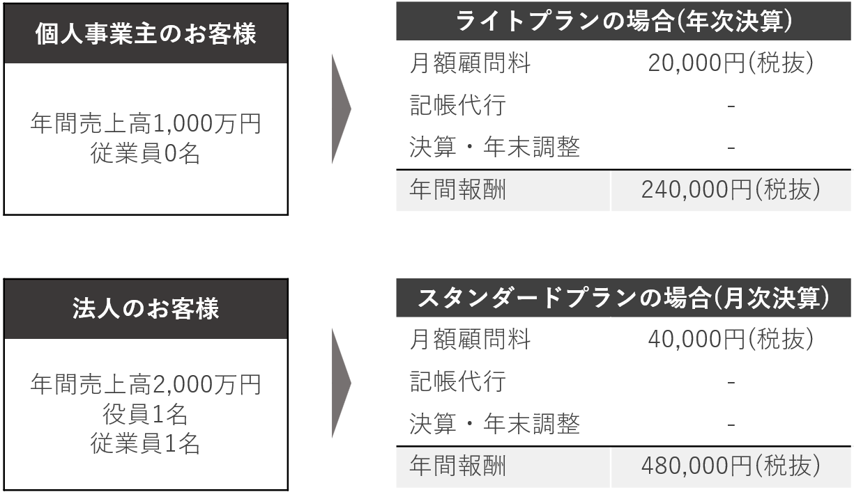 料金は基本的に「月額顧問料×12か月」のみです。(記帳代行・年末調整・決算料は月額顧問料に含まれています)